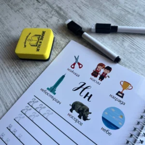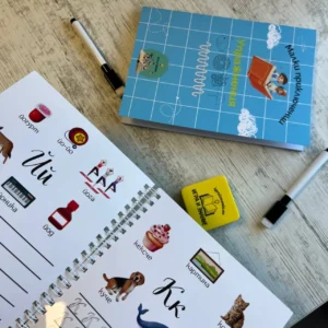 Изтриваема книжка с 36 цветни страници, създадена да направи ученето на буквите лесно и приятно.