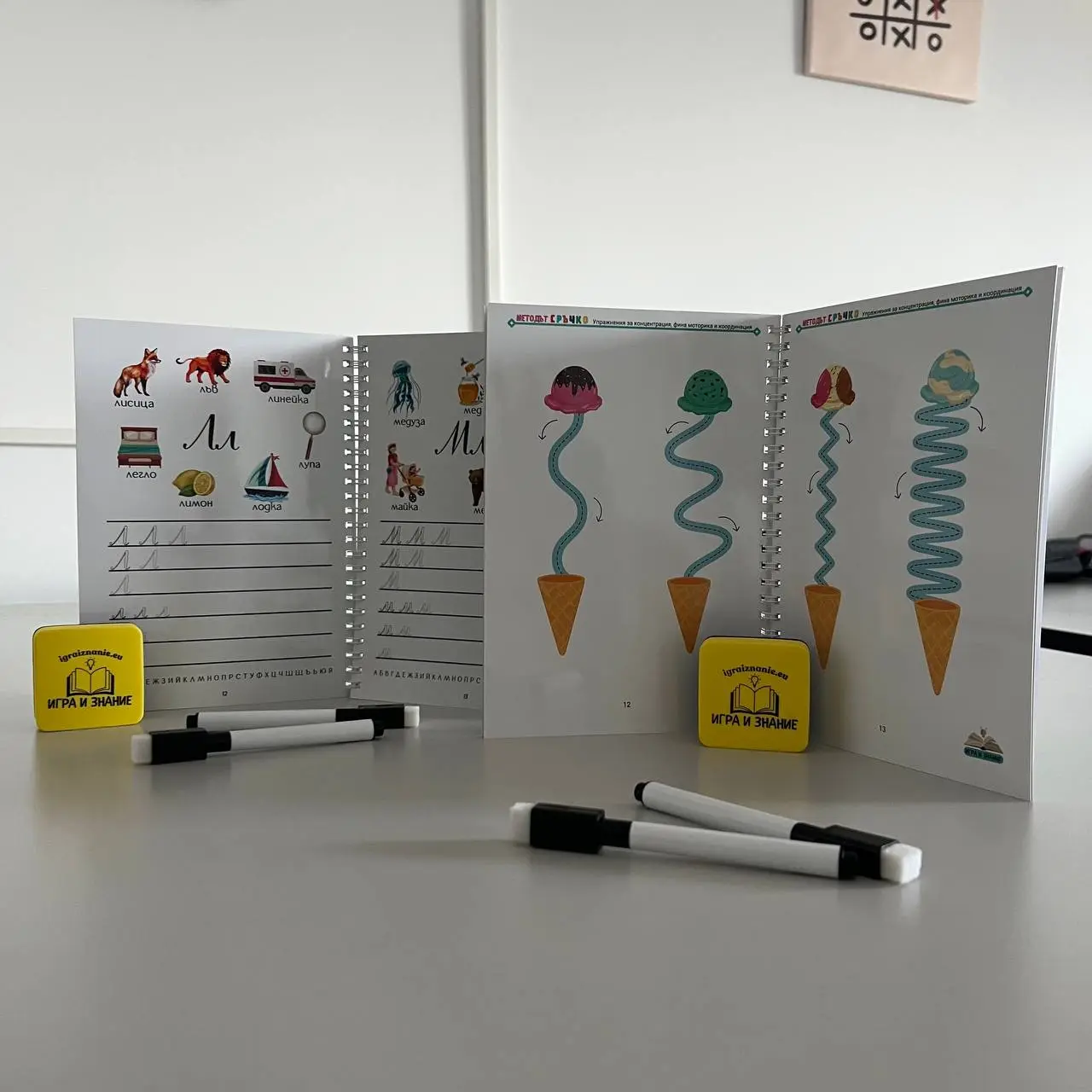 Голямото предимство на книжката е, че е изтриваема. Детето може да пише, да трие и да опитва отново, без страх от грешка.