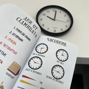 С книжката детето развива фината моторика и логическото си мислене, докато свързва точки, открива липсващи букви, упражнява писане на часа, събира числа и намира предмети – чрез активности, които ангажират вниманието и превръщат ученето в забавление.