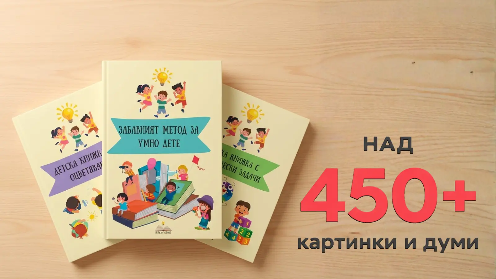 “Забавният метод за умно дете” – Книжка за Учене Чрез Игра и Илюстрации + 2 Книжки Подарък (60 стр., за деца от 2 до 6г.)
