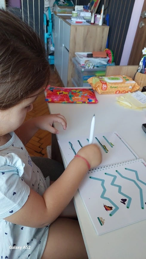 Вярваме, че така детето тренира ръчичката си и се подготвя за училище.