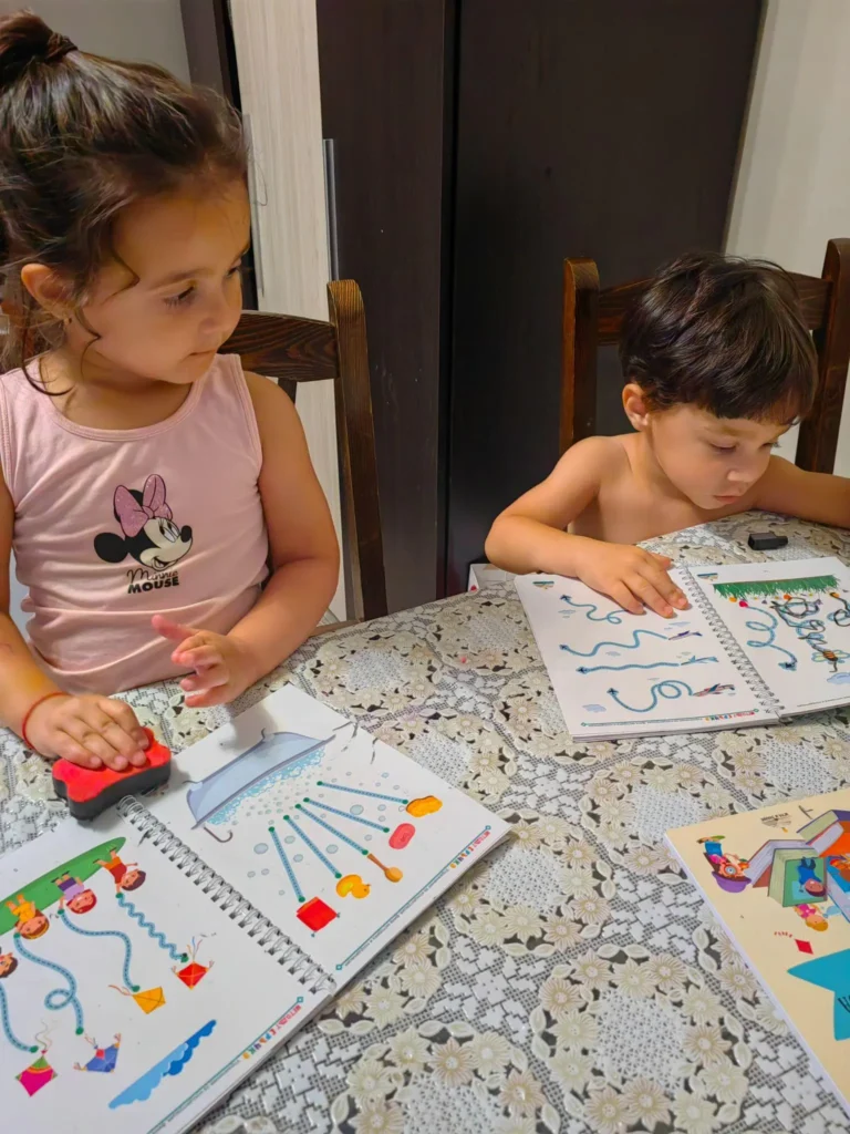 Имам близнаци на 3г. книжките наистина са много хубави – харесват ми както като идея, така и самите илюстрации. Като ги дадох на децата и имаше подобрение – занимават се с интерес и работят с тях. Като цяло с повечето книжки само драскат, но тези определено са по-специални за тяхното развитие