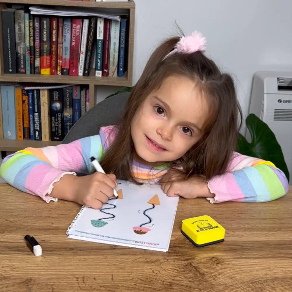 Препоръчваме да използвате специални изтриваеми маркери, които са безопасни за деца и лесно се изтриват от ламинираните страници.