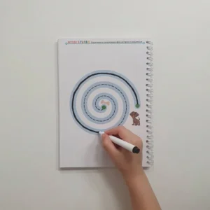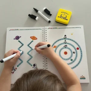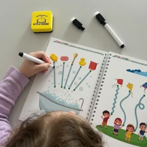Книжката включва 40 ламинирани страници, 2 маркера и гъбичка. Това означава едно: детето може да пише, трие и започне отначало колкото пъти иска.
