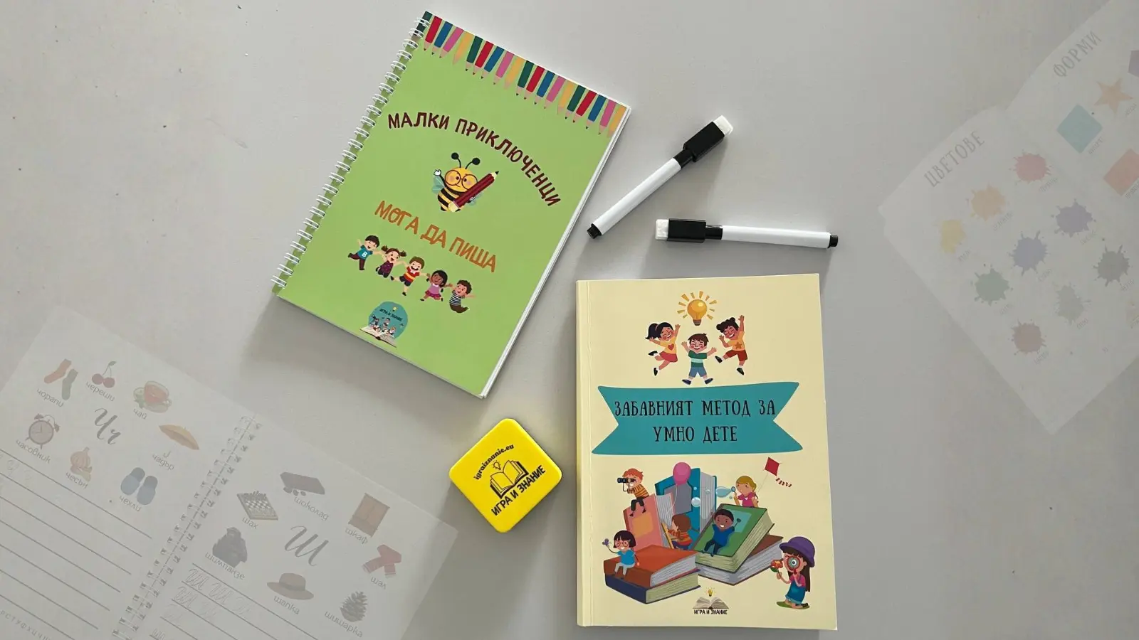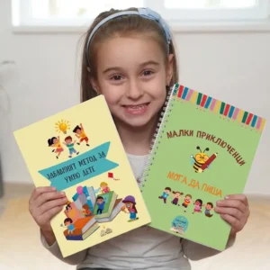 „Забавният метод за умно дете“ развива речта, вниманието и мисленето чрез асоциации и образи, а „Мога да пиша“ надгражда с упражнения за очертаване, проследяване и писане.